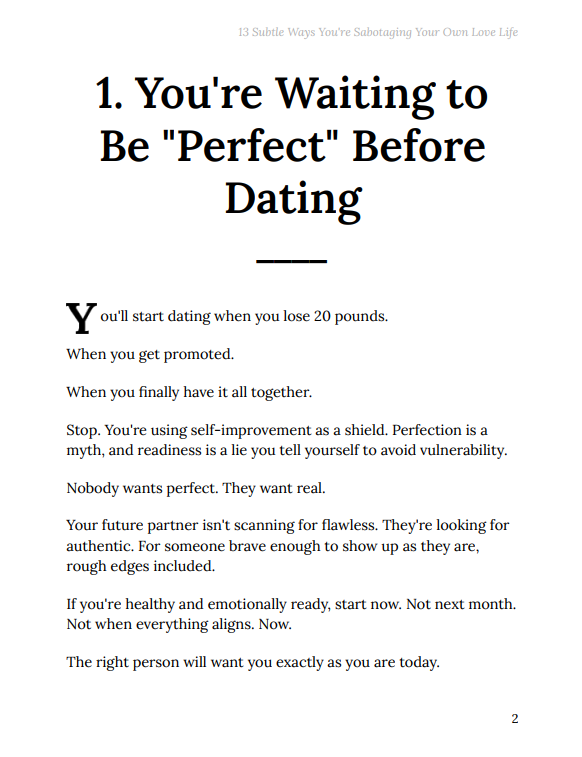 Designed as a sharp, relatable listicle, it walks you through 13 powerful insights that will challenge your thinking, increase self-awareness, and help you finally break the cycle of missed connections.