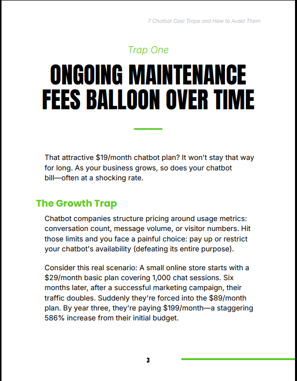7 Chatbot Cost Traps and How to Avoid Them reveals the real financial impact of chatbot adoption—beyond the advertised monthly fee. This guide walks you through the hidden costs, operational realities, and strategic considerations that most businesses only discover after it’s too late. With clear explanations and practical insights, you’ll be equipped to make informed, profit-driven decisions about automation.