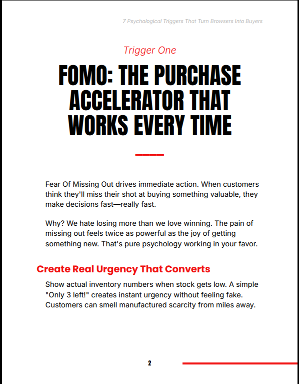 7 Psychological Triggers That Turn Browsers Into Buyers reveals the proven behavioral principles top-performing online stores use to convert casual visitors into paying customers. This practical, no-fluff guide shows you exactly how to apply psychological triggers like social proof, urgency, and trust signals to dramatically increase your sales and reduce hesitation at checkout.