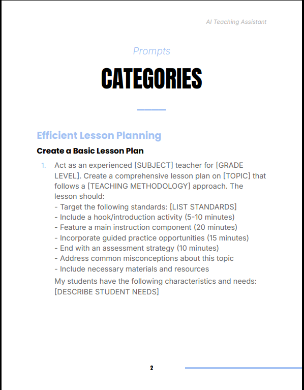 1. AI-powered lesson planning prompts