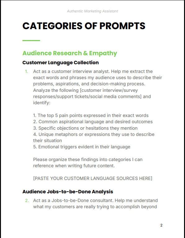 - 1. Audience empathy prompts: understanding real pain points