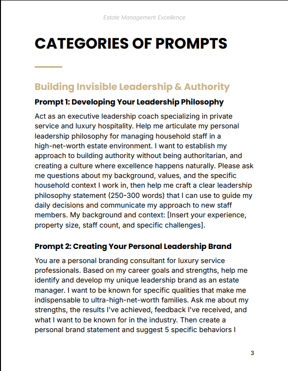 Estate management at the highest level requires more than experience—it demands precision systems, emotional intelligence, and anticipatory execution. This prompt pack eliminates guesswork by giving you structured tools to think, plan, and operate like a top-tier professional. Instead of reacting to problems, you build systems that prevent them.