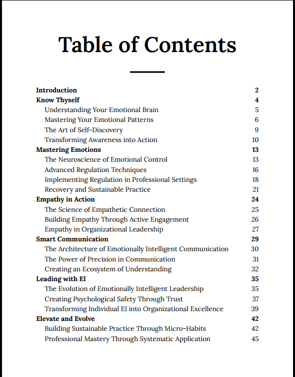 Level Up Your Emotional Intelligence is a structured, practical guide that takes you beyond basic emotional awareness into strategic emotional control, communication, and leadership. By combining neuroscience, behavioral frameworks, and real-world applications, this book helps you build a high-performance mindset and emotional discipline that translates into results.