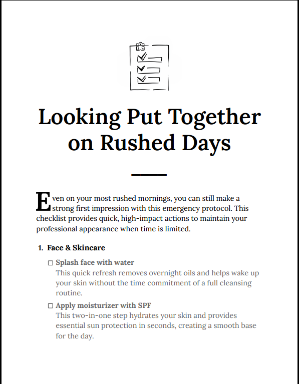 Looking Put Together on Rushed Days Checklist gives you a simple, structured system to stay sharp and presentable—even when you’re running late. Instead of overwhelming routines, this checklist focuses on high-impact actions that create the biggest visual and psychological difference in the shortest time.