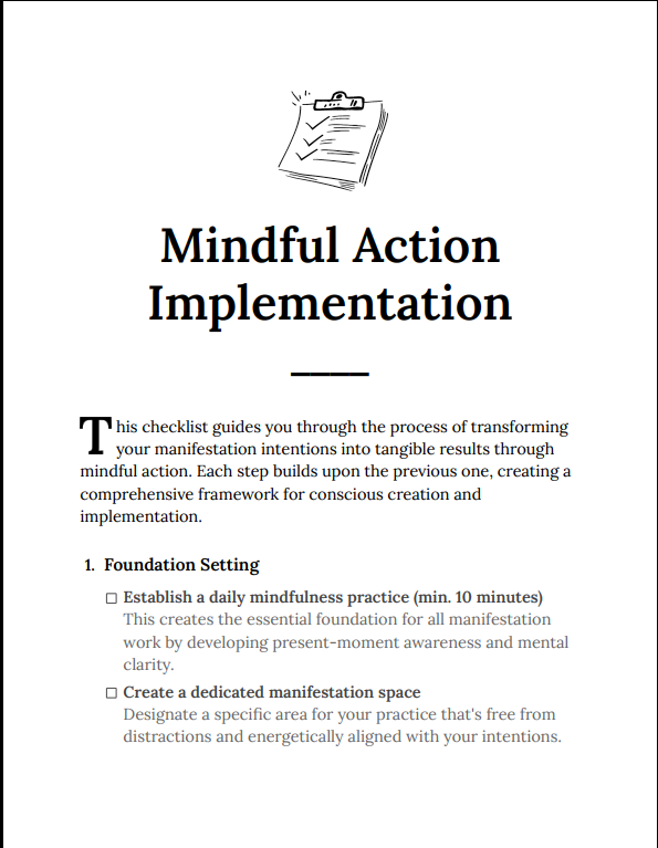 Mindful Action Implementation Checklist is a structured, step-by-step system that helps you turn manifestation ideas into real-world results through focused, intentional action. Designed for clarity and execution, it bridges the gap between thinking and doing.