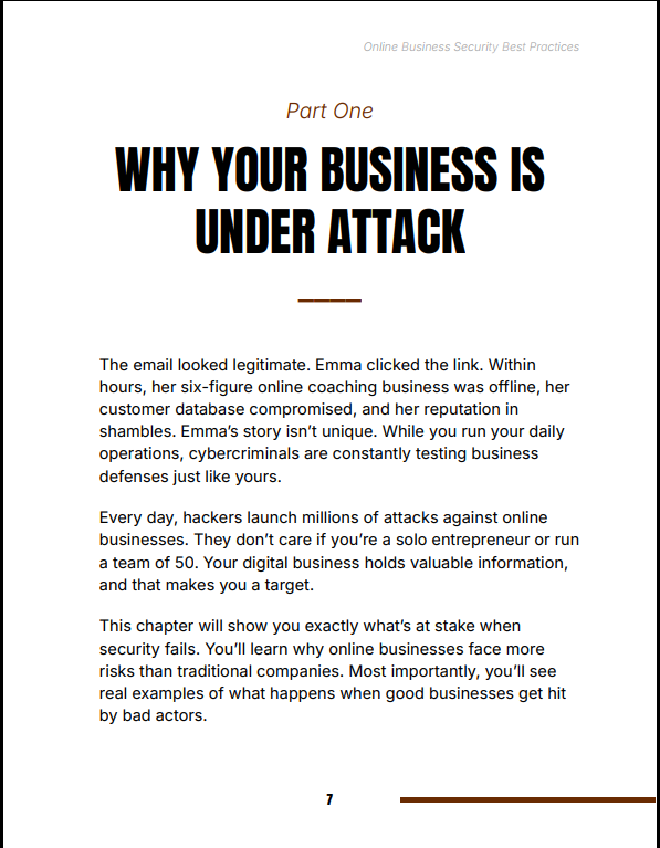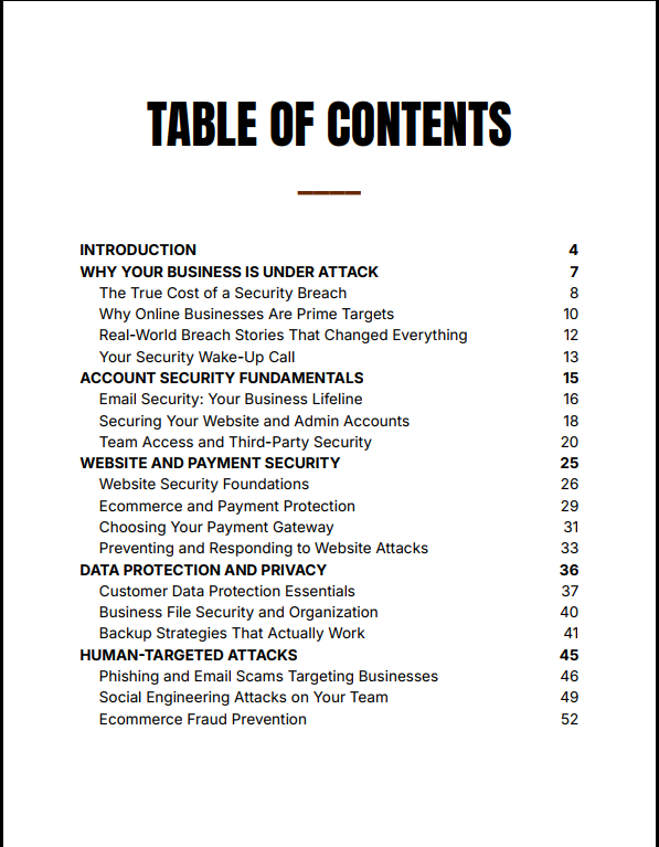 Most online businesses focus on growth—but ignore security until it’s too late. A single breach can lead to lost revenue, damaged reputation, and customer distrust. Online Business Security Best Practices focuses on prevention and resilience—giving you simple systems to reduce risk, protect assets, and operate with confidence in a threat-filled digital environment.