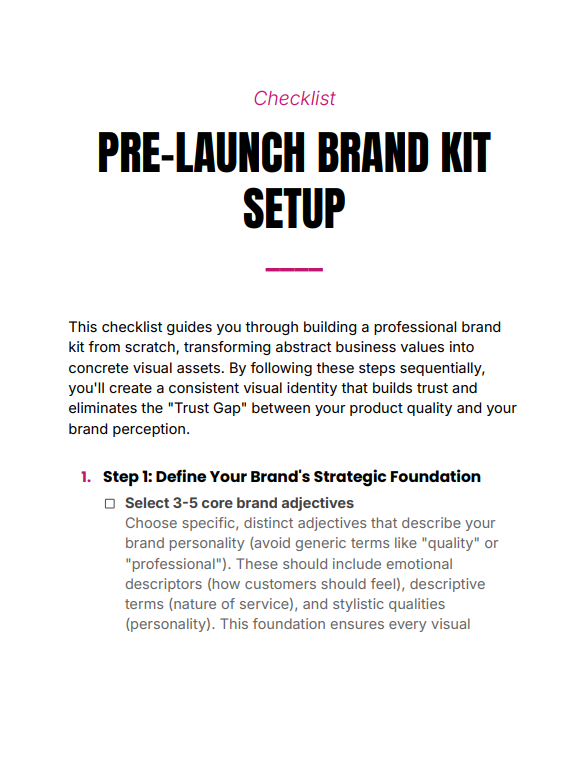 Pre-Launch Brand Kit Setup Checklist is a step-by-step system that helps you turn your business idea into a clean, professional, and trust-building brand identity before launch. It guides you from abstract brand values to concrete visual assets so your brand looks credible from day one.