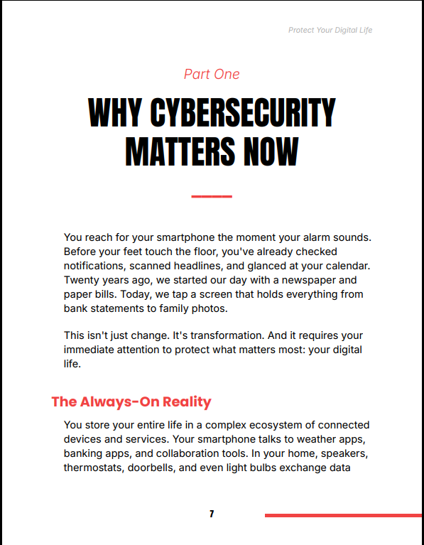 Protect Your Digital Life equips you with the knowledge and practical systems needed to stay safe in an always-connected world. From understanding how cyberattacks actually work to building your own personal “cyber shield,” this guide breaks down complex security concepts into simple, actionable steps you can implement immediately.