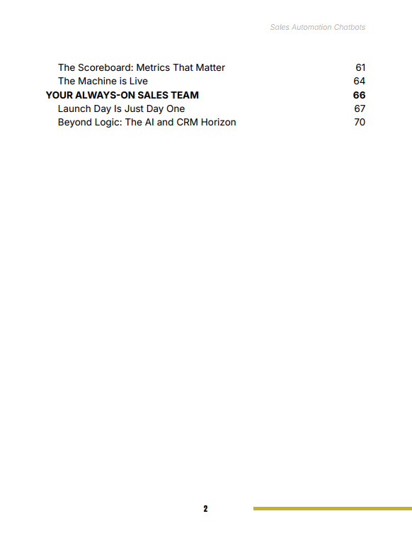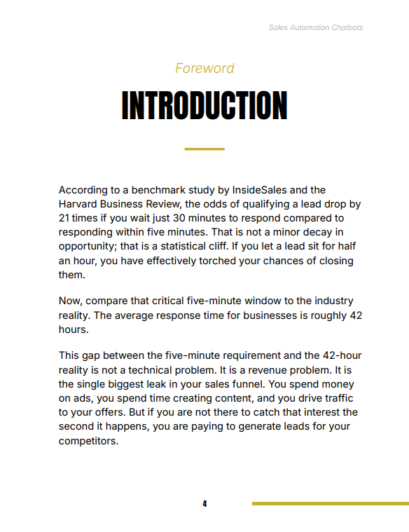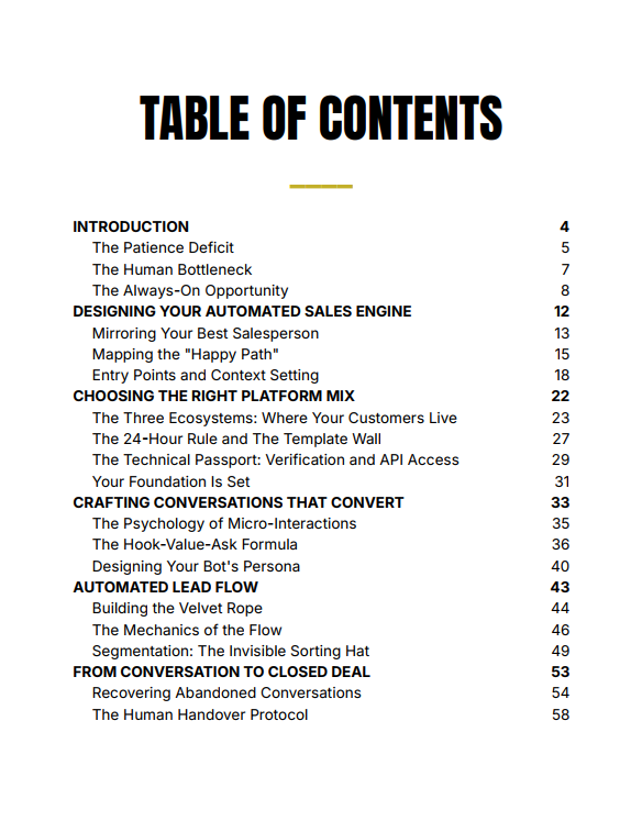 Sales Automation Chatbots teaches you how to replace slow, inconsistent sales processes with a structured, always-on chatbot system that captures, qualifies, and converts leads automatically. From understanding buyer psychology to designing conversation flows and integrating human support at the right moment, this guide gives you a complete blueprint to scale sales efficiently.