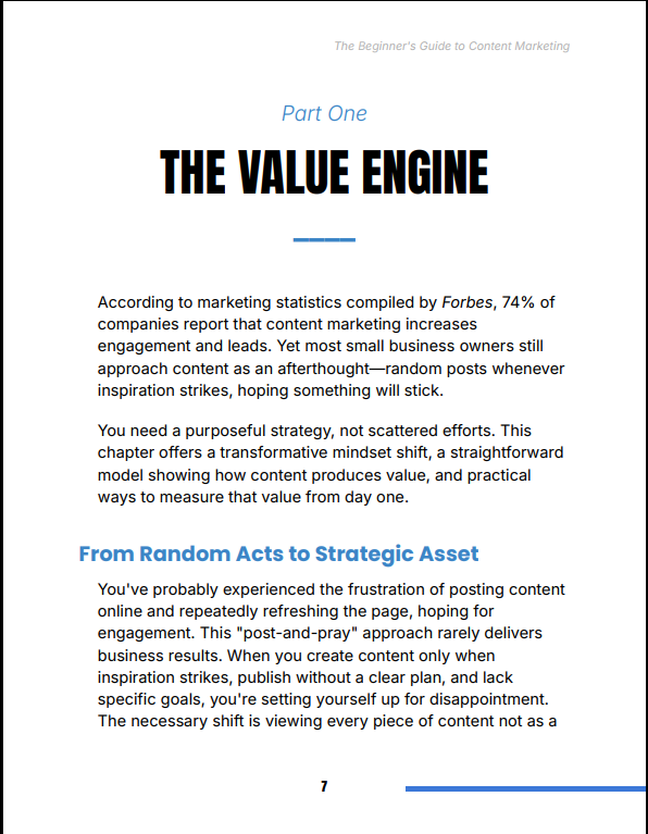 Most beginners treat content as posting. That leads to inconsistency, burnout, and slow growth. The Beginner’s Guide to Content Marketing reframes content as a value engine—a system that compounds results over time. With clear frameworks and actionable steps, you’ll stop guessing and start building a predictable growth system.