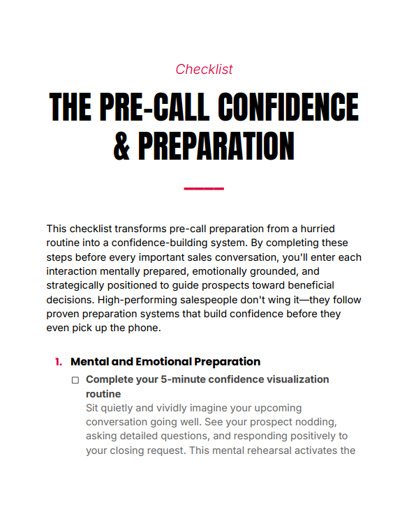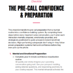 Most sales failures happen before the call even begins—due to poor preparation, lack of clarity, or low confidence. The Pre-Call Confidence & Preparation Checklist eliminates these gaps by giving you a proven system to follow every time. This reduces hesitation, increases control, and allows you to focus fully on guiding the conversation toward a successful outcome.