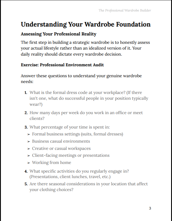 Most professionals underestimate how much their appearance influences perception. The Professional Wardrobe Builder Guide focuses on turning your wardrobe into a strategic asset—reducing daily stress, improving confidence, and ensuring your appearance consistently supports your ambitions.
