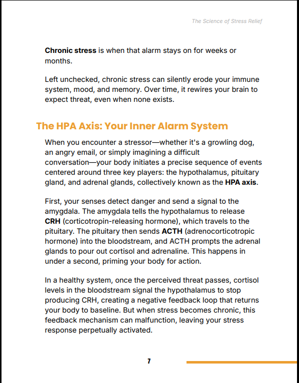 The Science of Stress Relief breaks down stress at its root—your nervous system, hormones, and brain circuits—and gives you precise tools to regulate them. Instead of vague advice, this guide delivers measurable, science-based methods to help you calm your body, sharpen your thinking, and build long-term resilience.